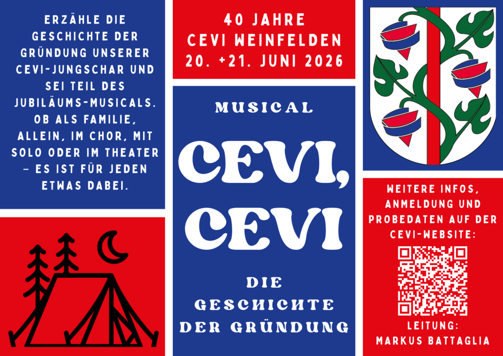 Musical: Cevi, CeviMusical: Cevi, CeviErzähle die Geschichte der Gründung unserer Cevi-Jungschar und sei Teil des... mehr