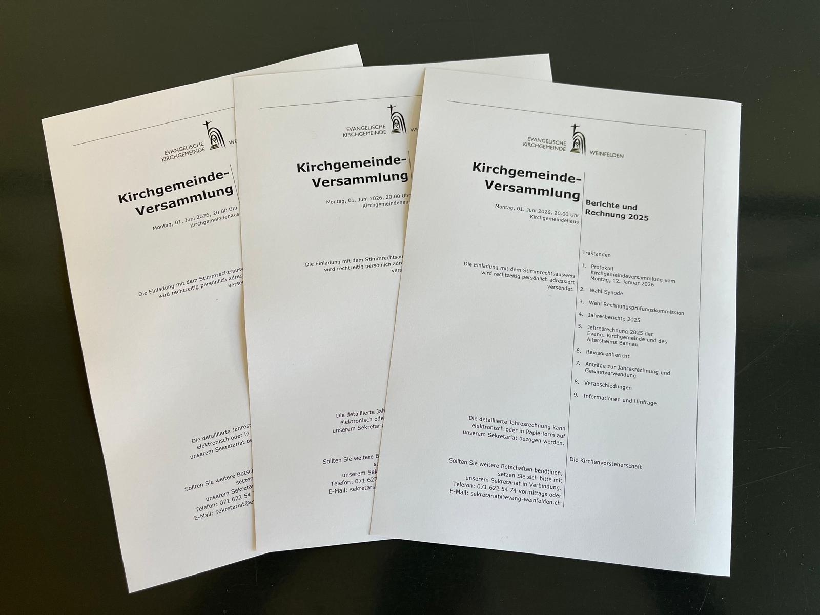 Die Einladung zur Versammlung liegt dem «Kirchenboten» vom Mai 2026 bei und ist auch hier ersichtlich.
